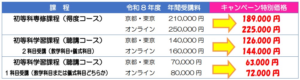 令和8年2月28日までの期間内に、令和8年度の入学申込手続きをされた方のうち、各学院先着順で、受講料10%割引を適用いたします。